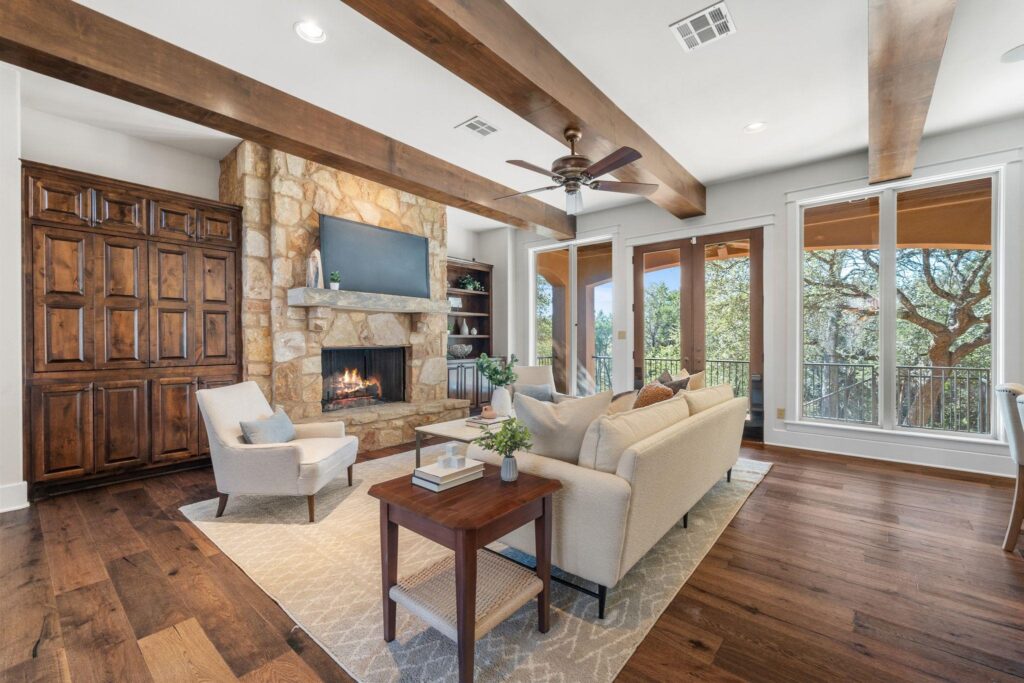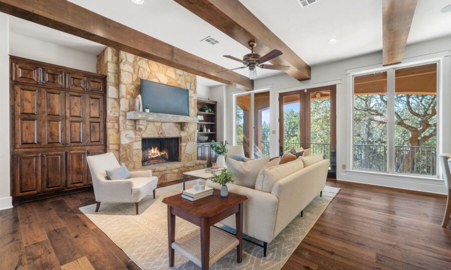 7009 Greenshores Drive is a rare luxury offering that truly allows buyers to have it all—privacy, views, and lifestyle—at an exceptional value under $1.5M. Tucked away on a quiet cul-de-sac and backing to protected greenspace, this home enjoys sweeping views of Lake Austin, providing miles of scenery with no through traffic and unmatched privacy. Adding to the lifestyle appeal, a neighborhood waterfront park sits directly across the street, featuring a private boat slip and a two-story patio—perfect for entertaining, hosting waterfront gatherings, or simply relaxing by the lake. The home itself has been meticulously maintained and shows like new. Recent upgrades include three brand-new HVAC units, a new water heater, and all new high-end kitchen appliances, offering peace of mind and modern efficiency. The quality of finishes and pristine condition are evident throughout. Inside, the thoughtfully designed floor plan features a spacious three-car garage with ample storage, a large chef’s kitchen with custom cabinetry that opens seamlessly to the living room highlighted by striking oversized beams, and a dedicated home office with custom built-ins and a floor-mounted safe. The primary suite is generously sized and opens to a luxurious bathroom with dual closets. The upstairs living area has been rarely used and feels brand new, offering additional flexible living space. Both the first and second levels feature expansive patios, each showcasing stunning Lake Austin views. The large backyard is complemented by a recently installed hot tub, creating the perfect outdoor retreat. This exceptional property combines privacy, views, and turnkey condition in a highly sought-after Lake Austin setting. Opportunities like this are rare—schedule your showing quickly, as this home will not be on the market long!